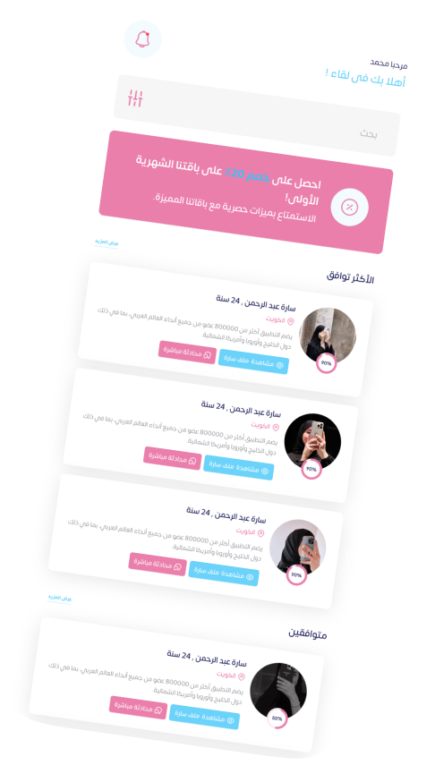 نظام ذكي يطابقك مع الأشخاص الذين يتوافقون مع اهتماماتك وقيمك.